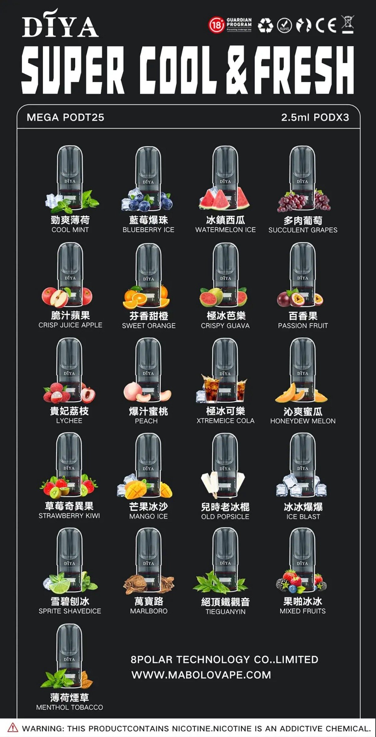 貨號: DIYA叮啞煙彈 分類: 電子煙煙彈 品牌: DIYA