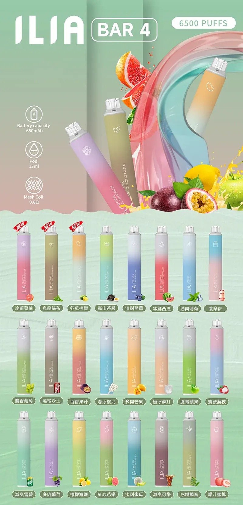 - 豐富口味選擇:熱帶水果與飲料系列口味,滿足不同口味偏好,提供多樣化選擇。